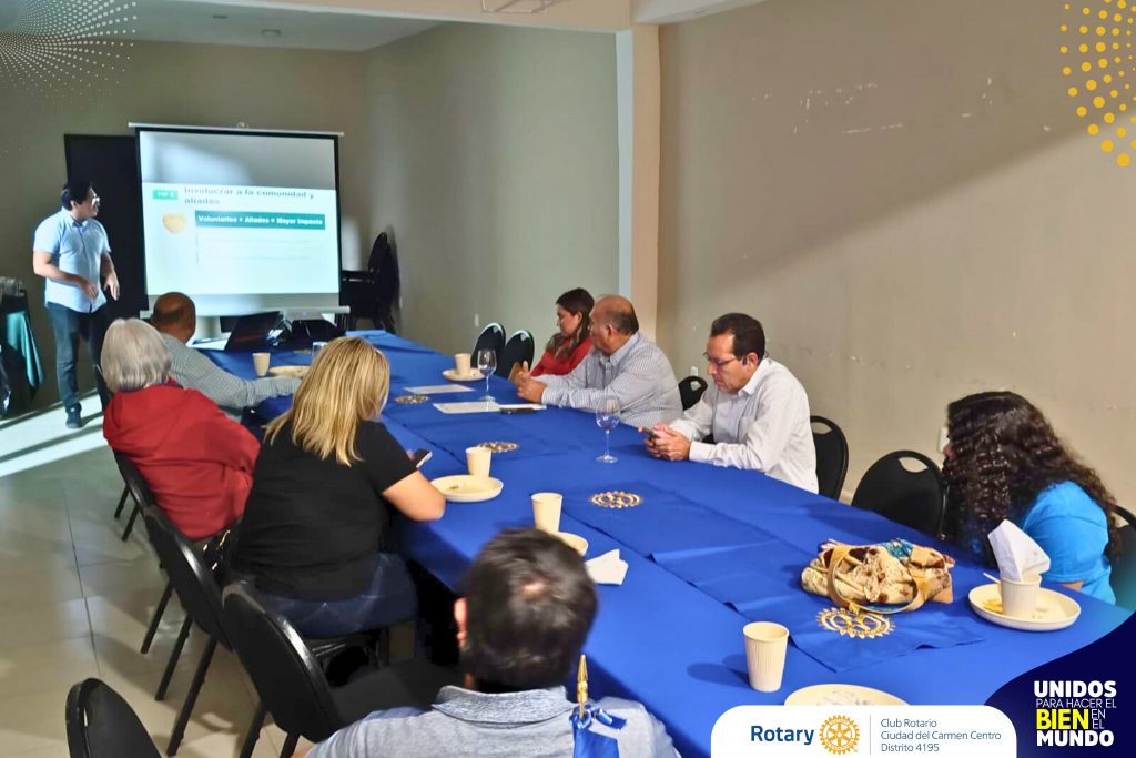 En el Club Rotario Ciudad del Carmen Centro, fortalecemos nuestras capacidades para servir mejor. En nuestra última sesión, el RDR del Distrito 4195 y socio del Club Rotaract Carmelitas David Cano Gallegos nos impartió una plática sobre Gestión de Proyectos Sociales, destacando que el impacto real nace de objetivos medibles, alianzas estratégicas y total rendición de cuentas.