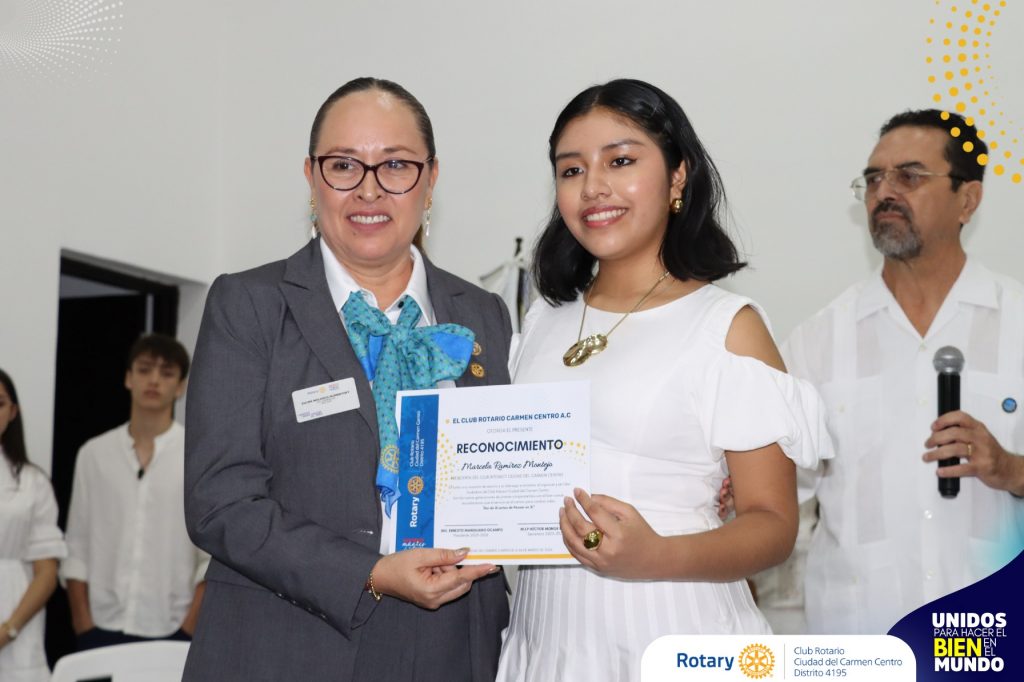 Agradecemos la presencia de los lideres rotarios de la isla carmelita, quienes fueron testigos de honor de este acto protocolario, del cual estamos muy orgullosos, por lo que nuestro estimado presidente, Ernesto Cuauhtémoc Mandujano, destacó la importancia de que la juventud se involucre en la solución de las problemáticas sociales, siempre guiados por la integridad y el compañerismo que caracterizan al rotarismo.
